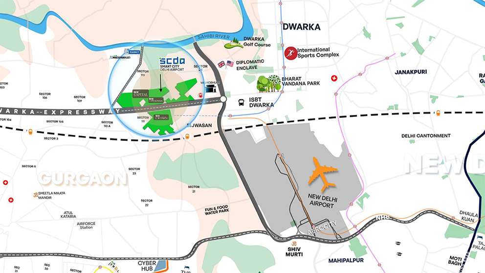 Live in luxury surrounded by sprawling golf courses at M3M Mansion. These ultra-luxurious residences boast grand apartments and penthouses within the master-planned Smart City Delhi Airport, a self-contained community. Each window offers breathtaking views of manicured greens featuring both local and exotic plants, all stretching across a vast 25 acres. Tranquil water features woven throughout the landscape add a touch of serenity to the environment.